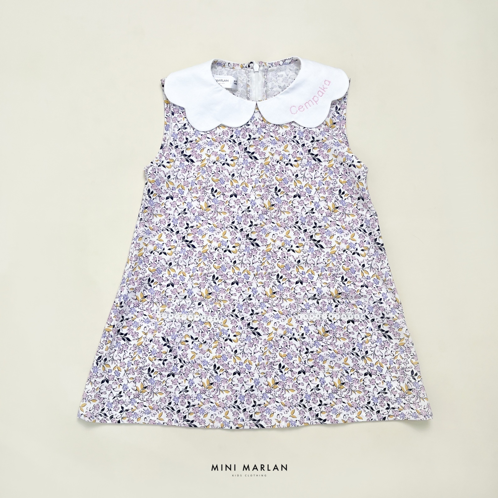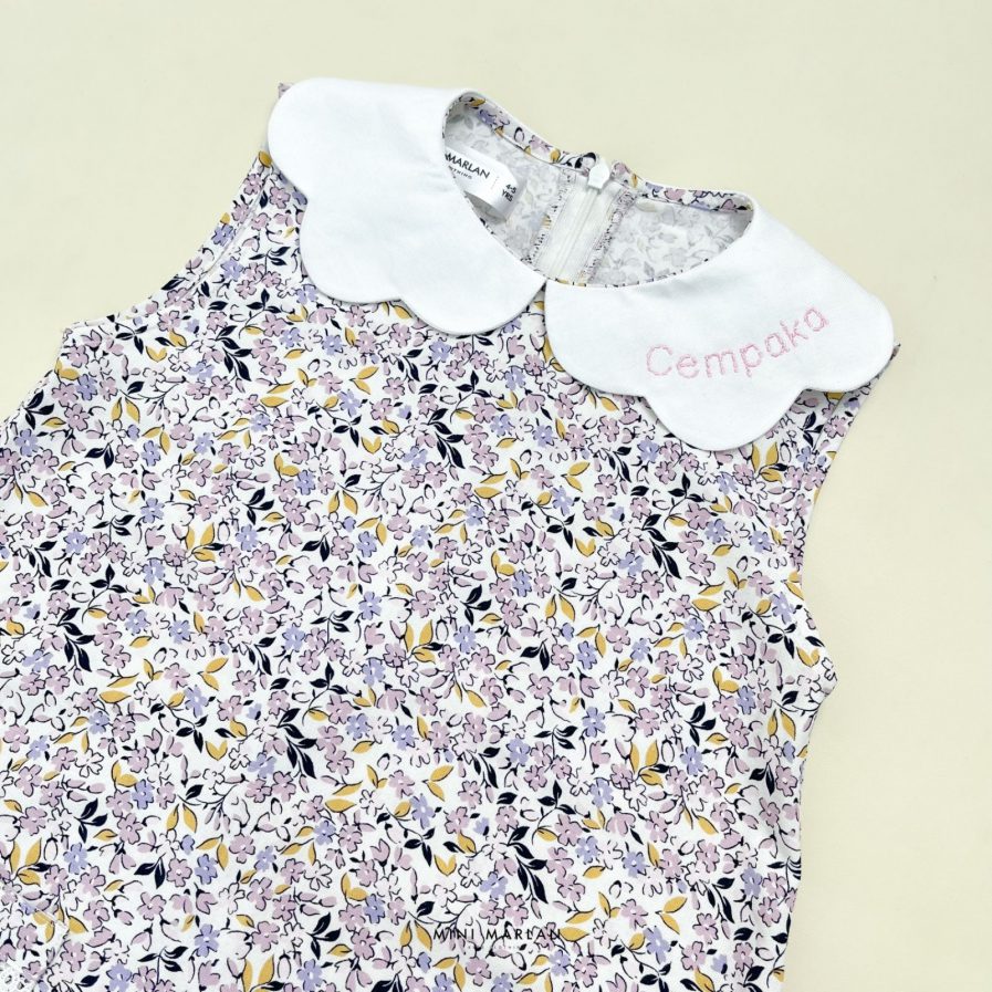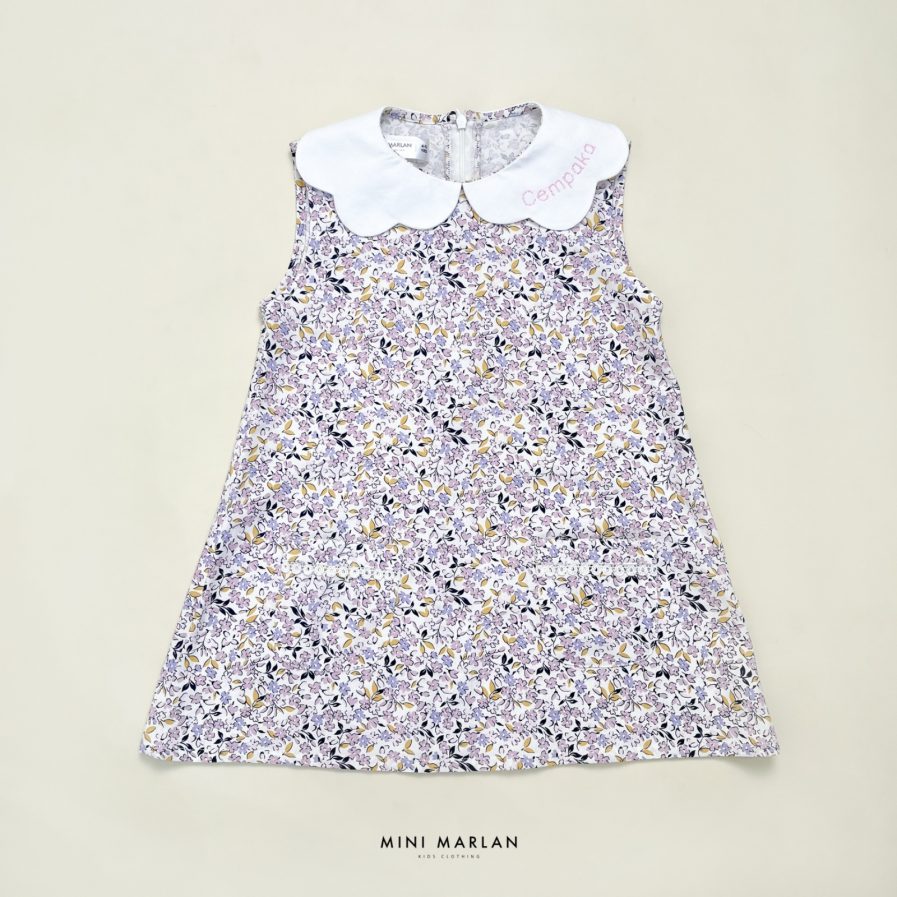 Gardenia Levi dress is an A-line sleeveless dress comes in Grey color with white scallop-shaped collars where you can embroidered your daughter’s name, completed with round pockets, white lis and white contrast straight stitch details around the pockets. It is simple, casual and timeless dress that made from soft and comfortable.